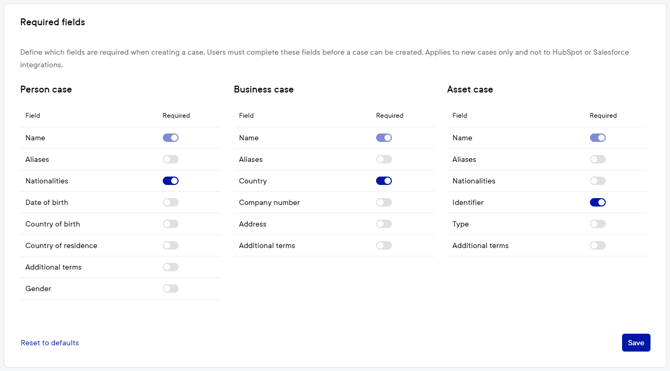 You can configure more fields to be mandatory to provide when creating new cases via the Screening settings in Pascal. To do this, follow the below steps: