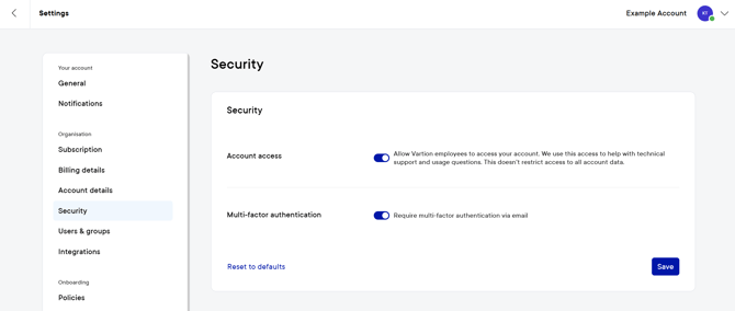 - Toggle the Require multi-factor authentication via email button and press Save.