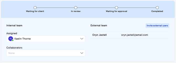 - When the internal approval has been completed, the progress will show the status Completed. This is the final stage of the client.